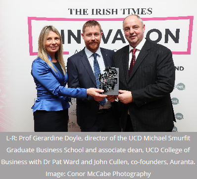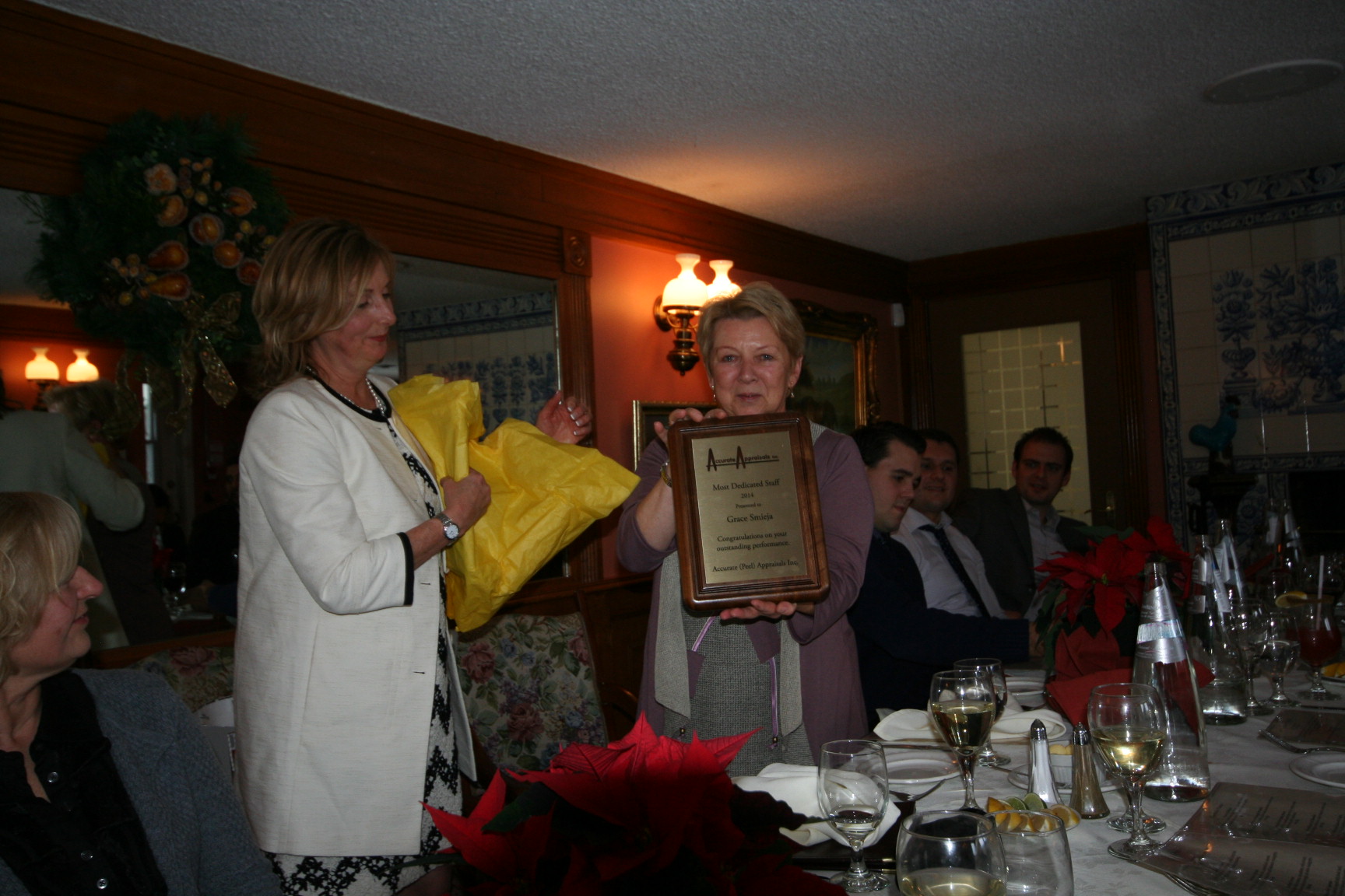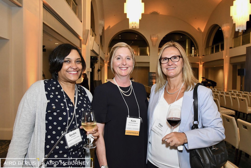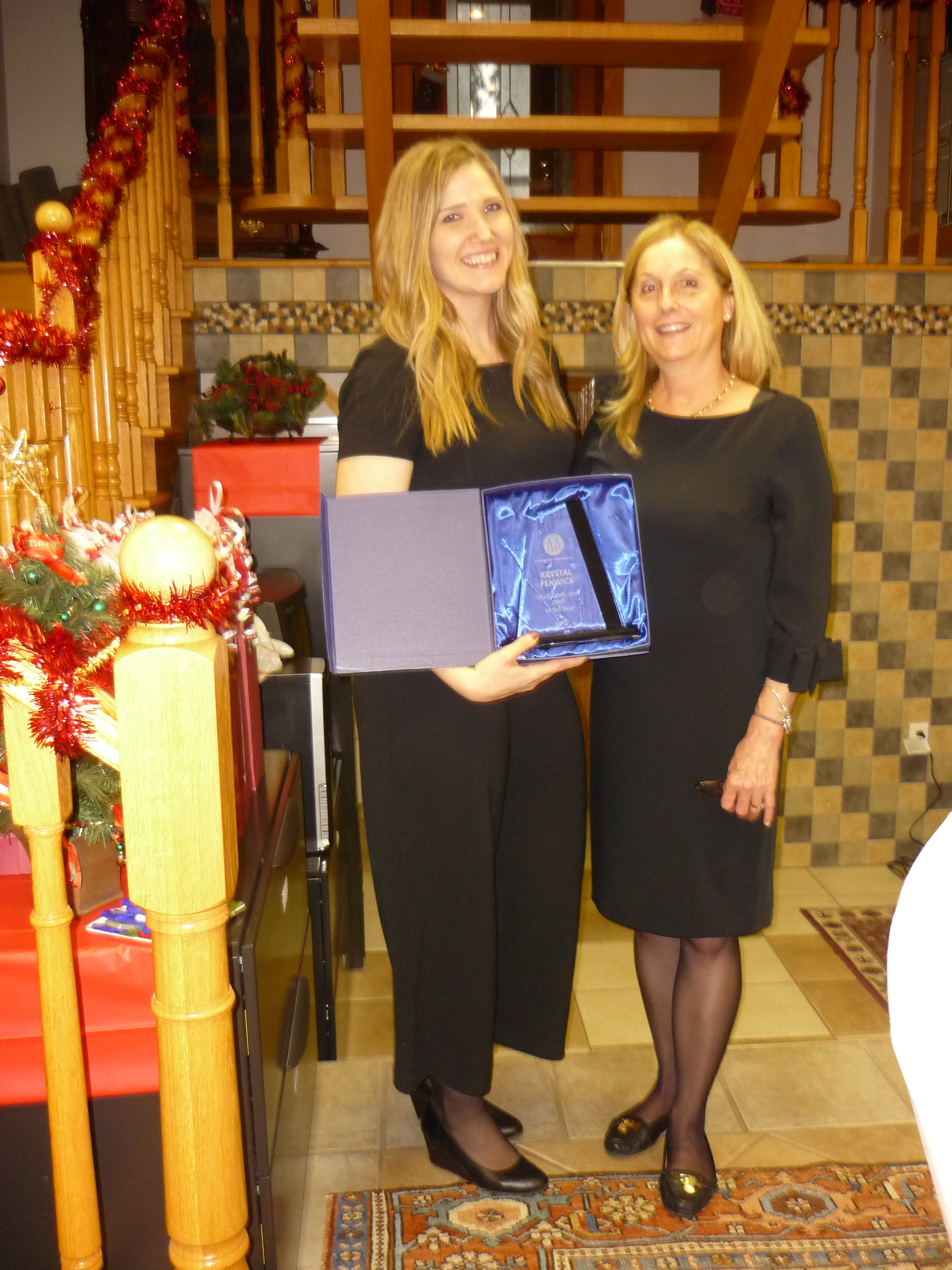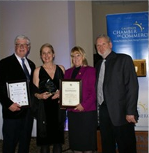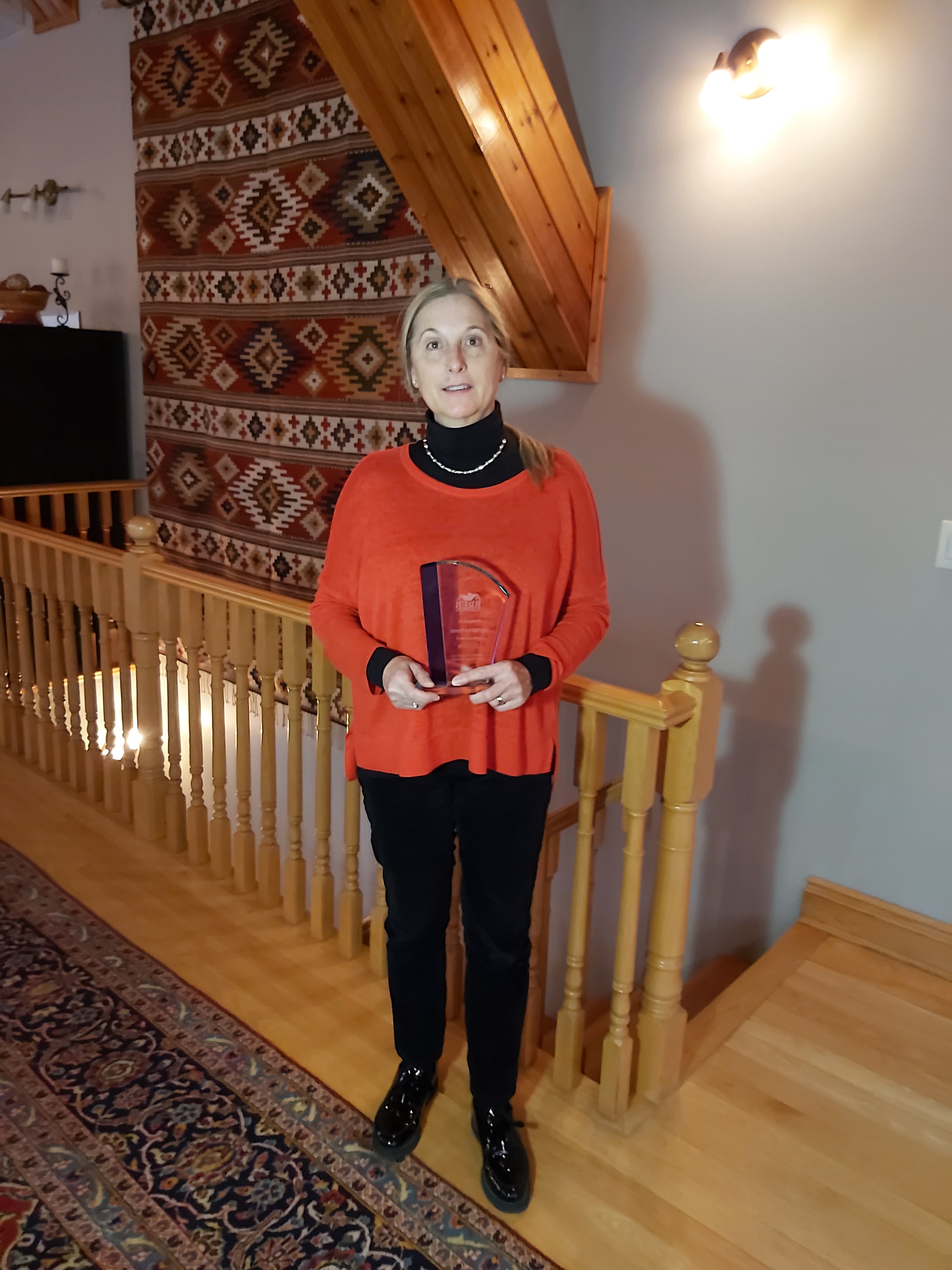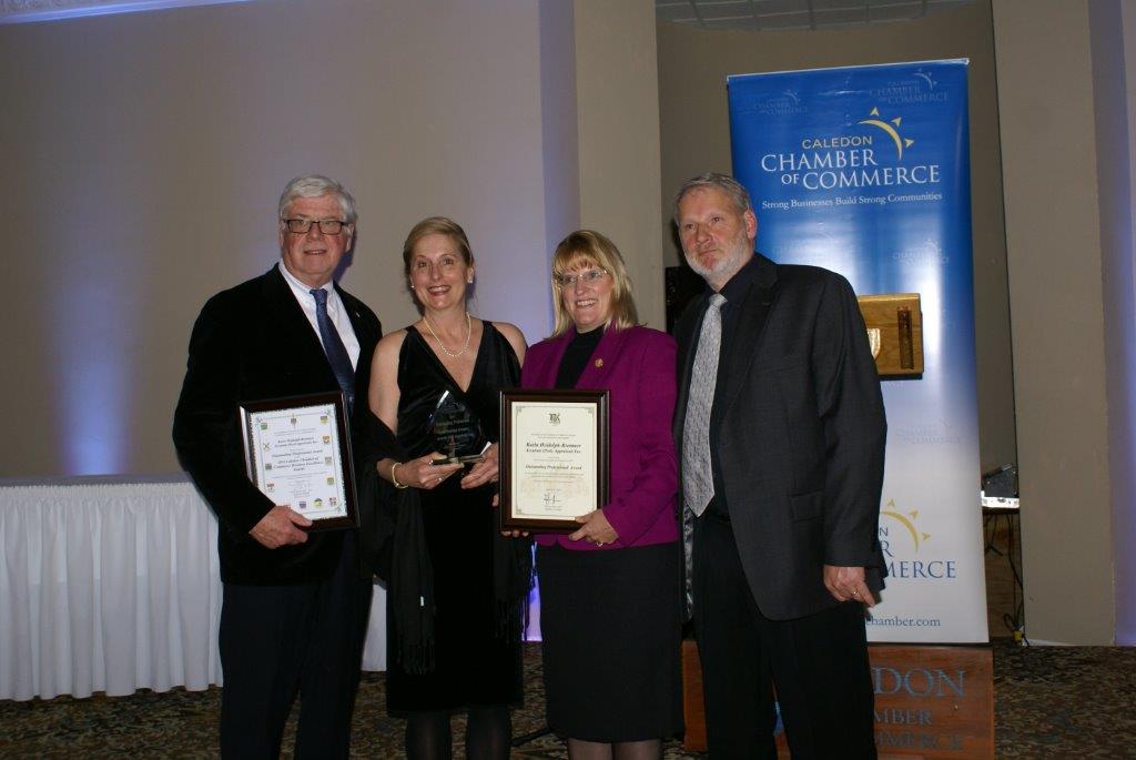 Karin Heidolph-Bremner receiving the Business Women of the Year Award at the Caledon Chamber of Comm